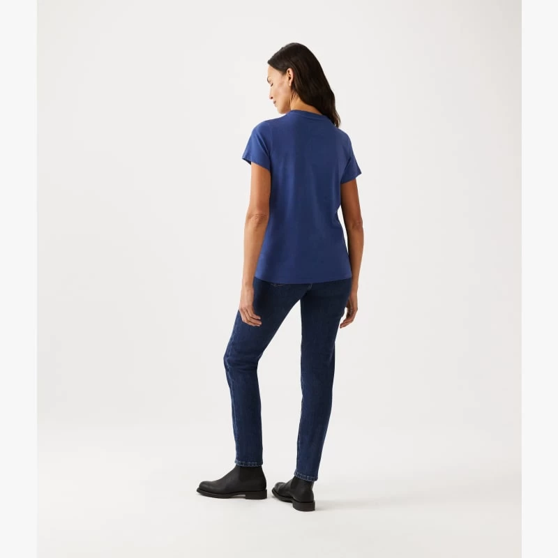 The Apsley t-shirt is a true wardrobe essential, offering versatility and comfort when paired with almost any look. It’s crafted from soft, breathable cotton and cut in a slim fit to flatter the body whilst remaining loose and casual. With a ribbed collar and subtle branded embroidery, it offers neutrality and invites the wearer to pair it with jeans, trousers or skirts for daily dressing.