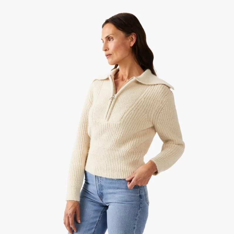 Getting dressed just got easier. Our Berri sweater is the perfect union of elegant style and all-day comfort, with a centre front zip details, versatile collar and ribbed hem and cuffs. It’s knitted from a cotton alpaca blend and shaped in a regular fit, with a saddle back. Pair is with jeans and your favourite RMs for a timeless look