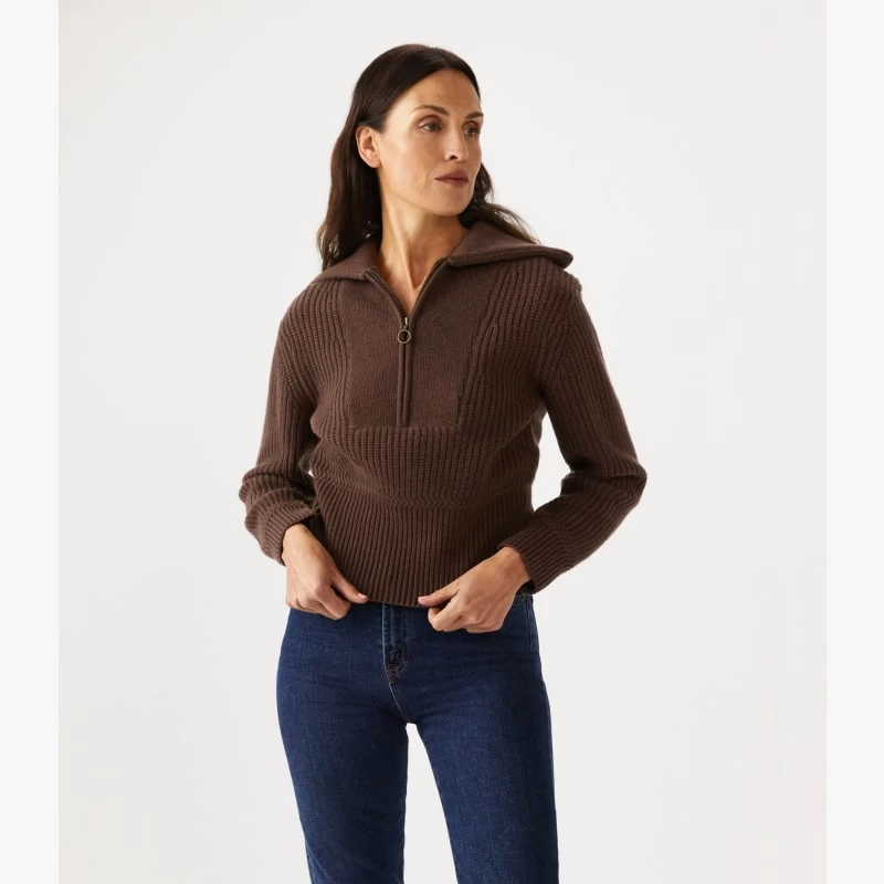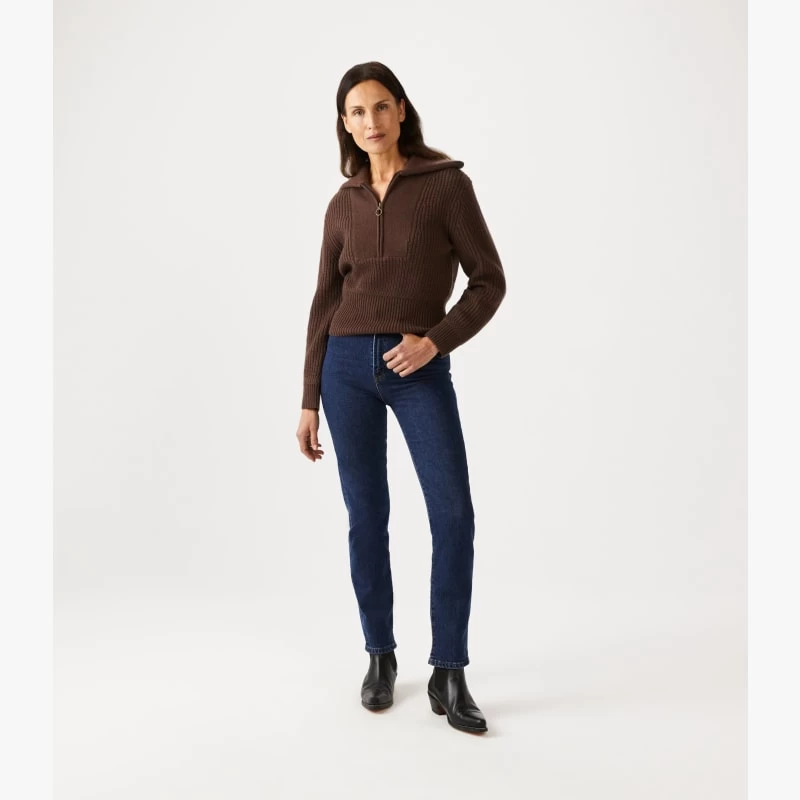 Getting dressed just got easier. Our Berri sweater is the perfect union of elegant style and all-day comfort, with a centre front zip details, versatile collar and ribbed hem and cuffs. It’s knitted from a cashmere blend and shaped in a regular fit, with a saddle back. Pair is with jeans and your favourite RMs for a timeless look.