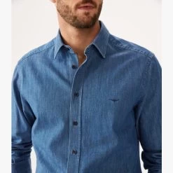 Not sure what to wear? Wear this. The Cadell shirt is a classic, versatile style that can pair back effortlessly with jeans, chinos and shorts for any occasion or season. It’s cut from a lightweight chambray in an easy wearing, regular fit, with long sleeves, adjustable cuffs and subtle longhorn embroidery on the chest.