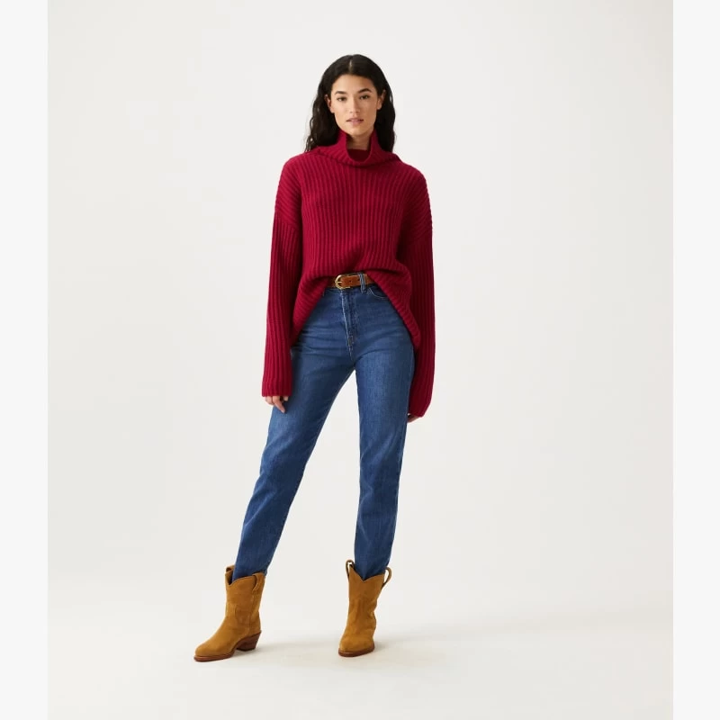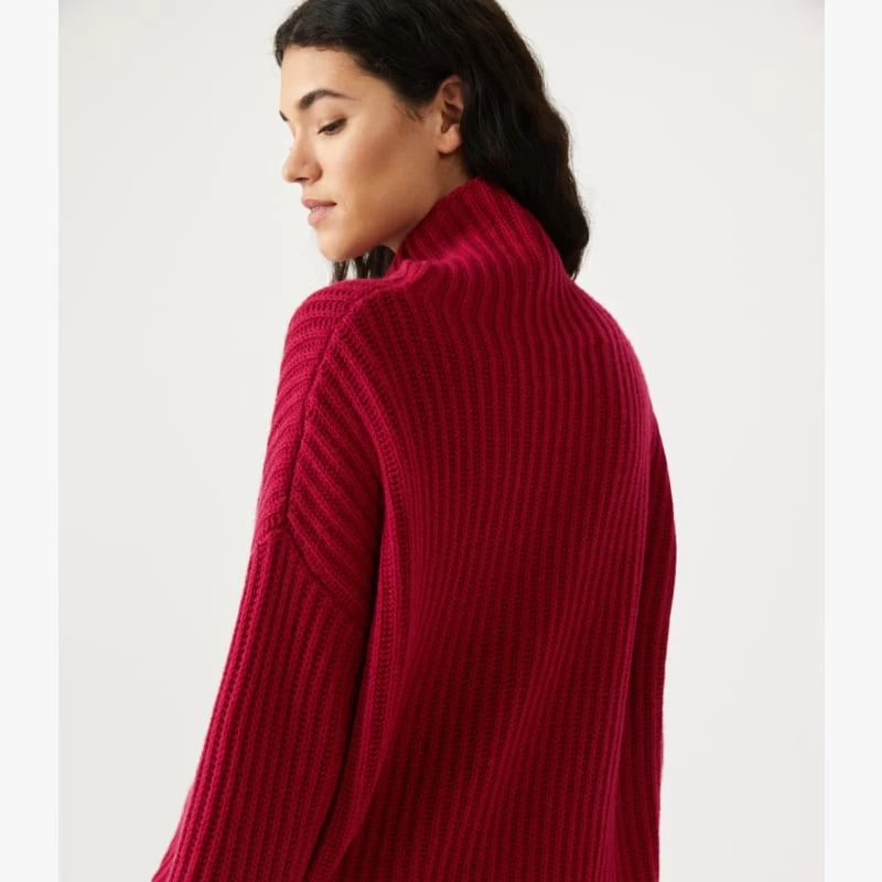 Knitted in a comforting Merino cashmere wool blend, the Eden sweater is the ultimate in laidback elegance. Its relaxed fit and classic funnel neck shape make this style easy to wear with denim, pants and feminine skirts.