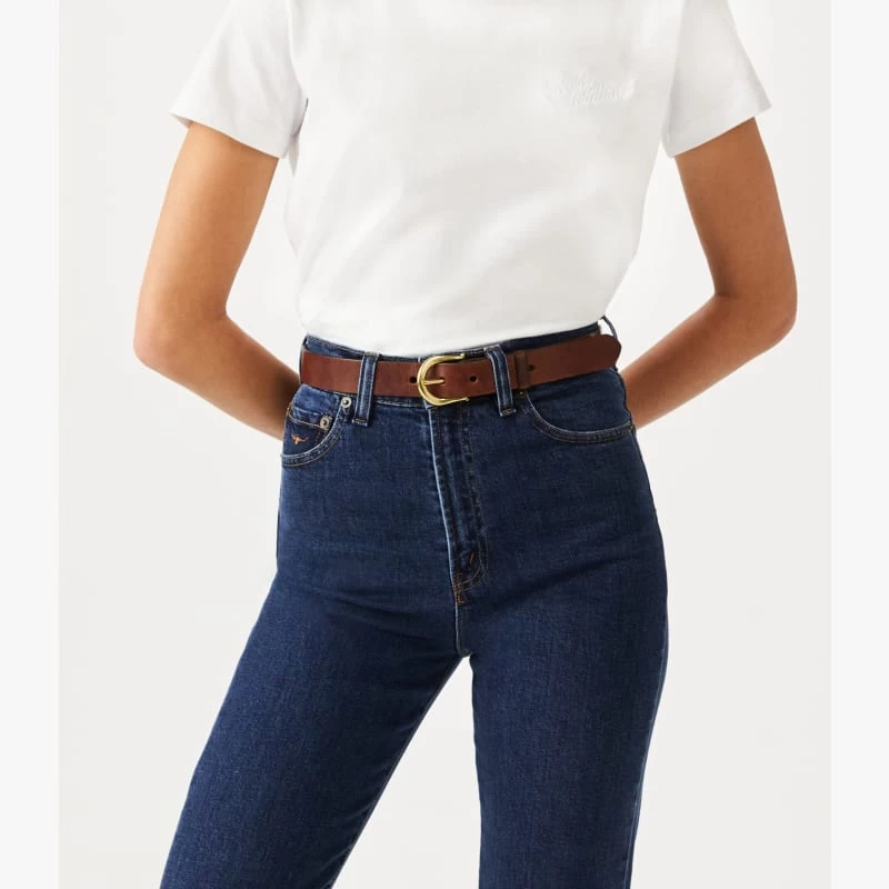 The Highbury belt is a modern accessory with subtle nods to our outback roots. It has a 1 1/4 wide strap, cut from double butt vegetable-tanned leather, and is finished with a single leather keeper and a classic horseshoe buckle in antique brass. Proudly crafted in our Adelaide workshop, this classic style also features a small longhorn deboss on the tip.