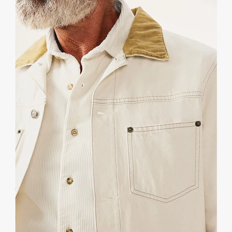 - Spade chest pockets and angled self welt pockets with profile stitch