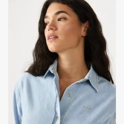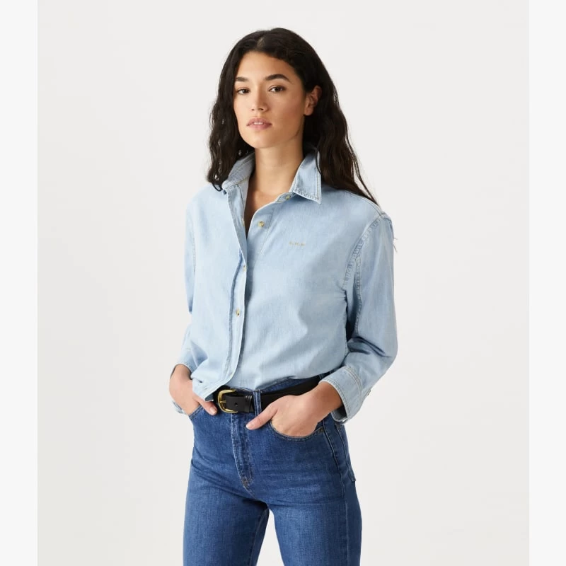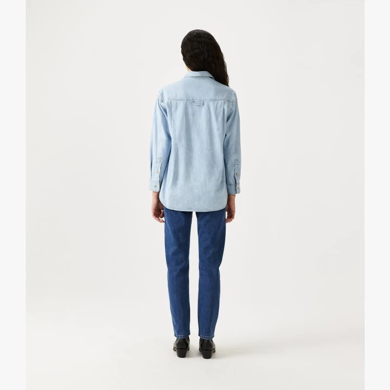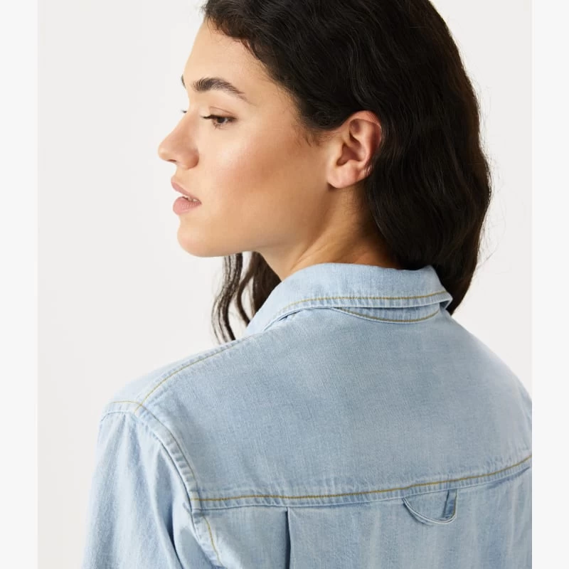 Embrace effortless dressing with the Norah shirt, a loose fitting take on the classic button up. It’s cut in a relaxed shape with long sleeves, angled button cuffs and back pleats which offer extra room for comfortable movement, whether you’re boarding a commuter train in the city or saddling up for a ride in the country. This style is proudly made in Australia from lightweight Japanese denim.