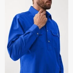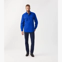 Over the head work shirts are easy to wear and true to our heritage as makers of functional workwear. The RMW Angus shirt long-sleeve shirt is a relaxed fit and features a four-button half-placket, double chest pockets with flaps and branded buttons.