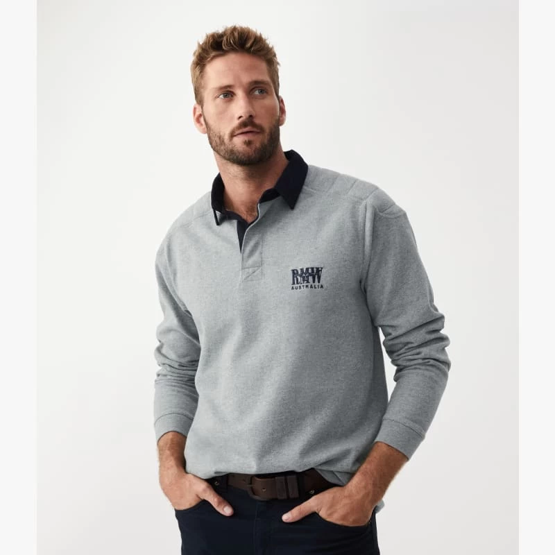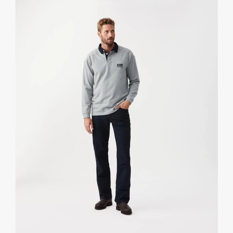 Constructed in a heavy cotton jersey, the R.M.W. Classic rugby is a heritage piece in a seasonal colour update, padded shoulders with a twill collar, rib cuffs and RMW Longhorn logo embroidery on chest