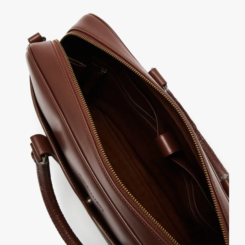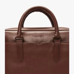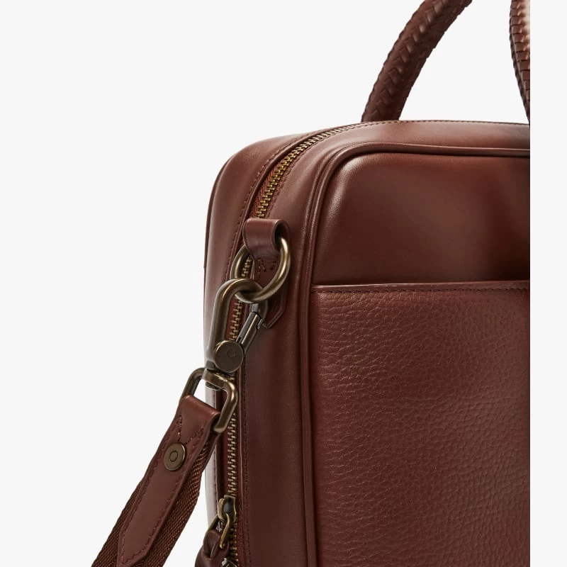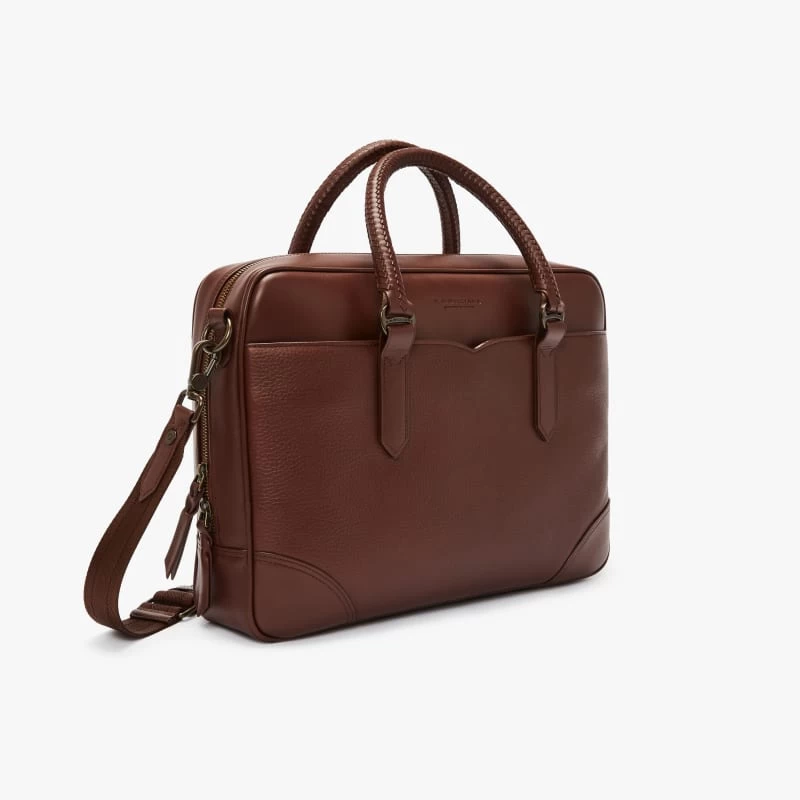 The R.M.Williams Briefcase is crafted from full grain leather, this premium men’s accessory is both practical and stylish, it features an internal padded laptop sleeve, zip pocket and phone/pen holders, over the shoulder strap, plaited handles and nickel hardware.