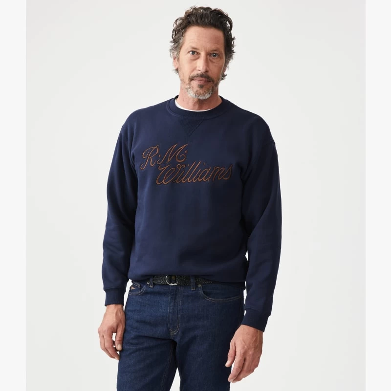 Constructed in a cotton blend fleece, the RMW Script Crew Neck Jumper is a must-have casual staple, featuring a rib neck, cuffs and waistband, with large R.M.Williams script embroidery across chest