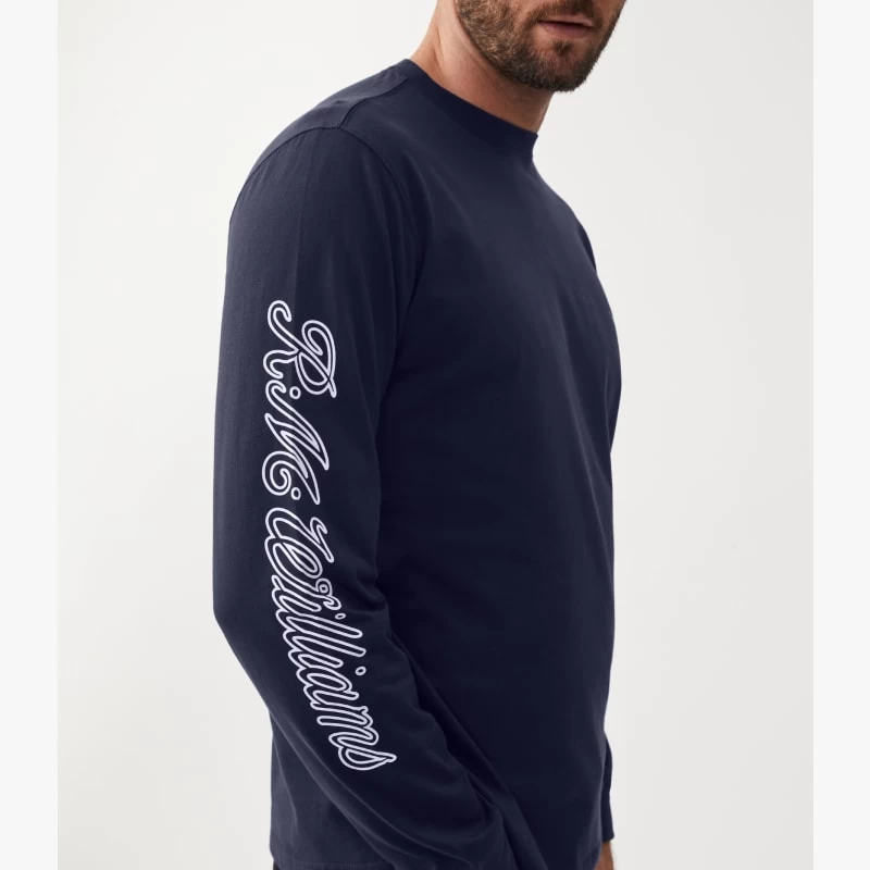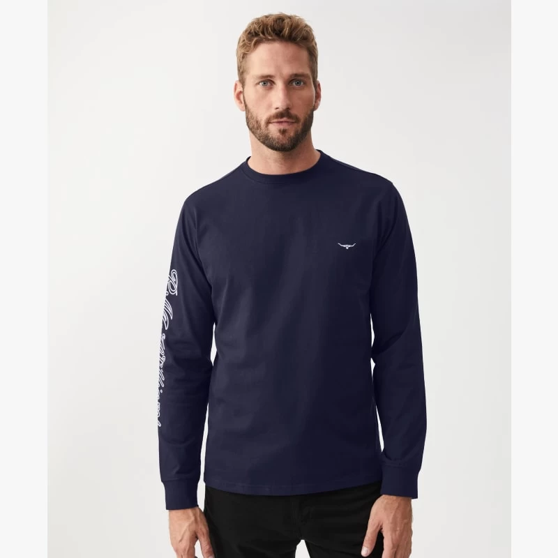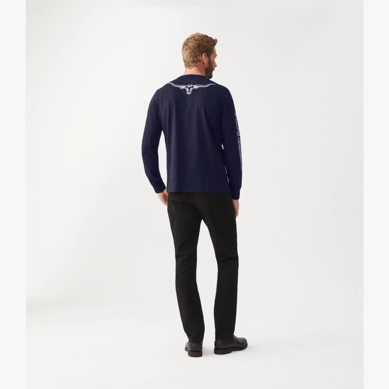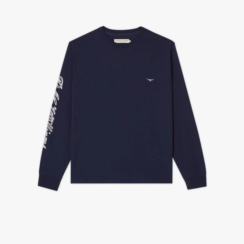 Constructed in cotton jersey, the Signature long sleeve crew neck t-shirt is an addition to your wardrobe staples, featuring an R.M.Williams script print down the sleeve, bold Longhorn print across shoulders and Signature Longhorn printed logo on chest